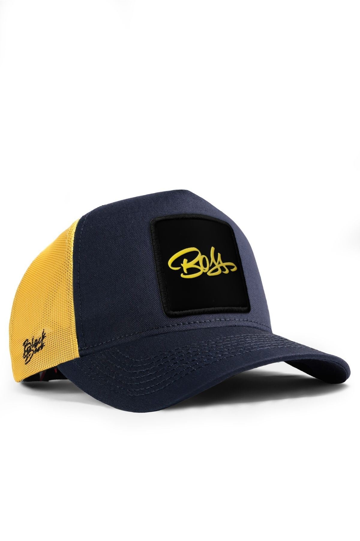Descubre la Gorra Trucker Premium en color Marino-Amarillo de BlackBork, con una variedad de parches intercambiables y personalización opcional para llevar tu estilo al siguiente nivel.